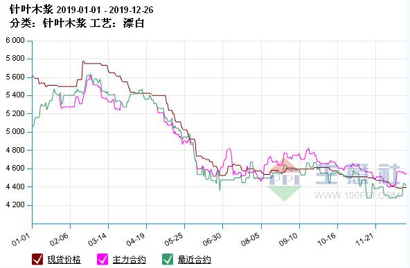 2018年11月27日,紙漿期貨在上海期貨交易所開盤后,漿價松動現象明顯,導致木漿價格出現下跌。進入2019年紙漿期貨價格的漲幅也一直影響著木漿現貨價格走勢。紙漿期貨價格和木漿現貨價格基本一直處于聯動關系,期貨價格的持續走低也使得現貨價格上漲乏力。